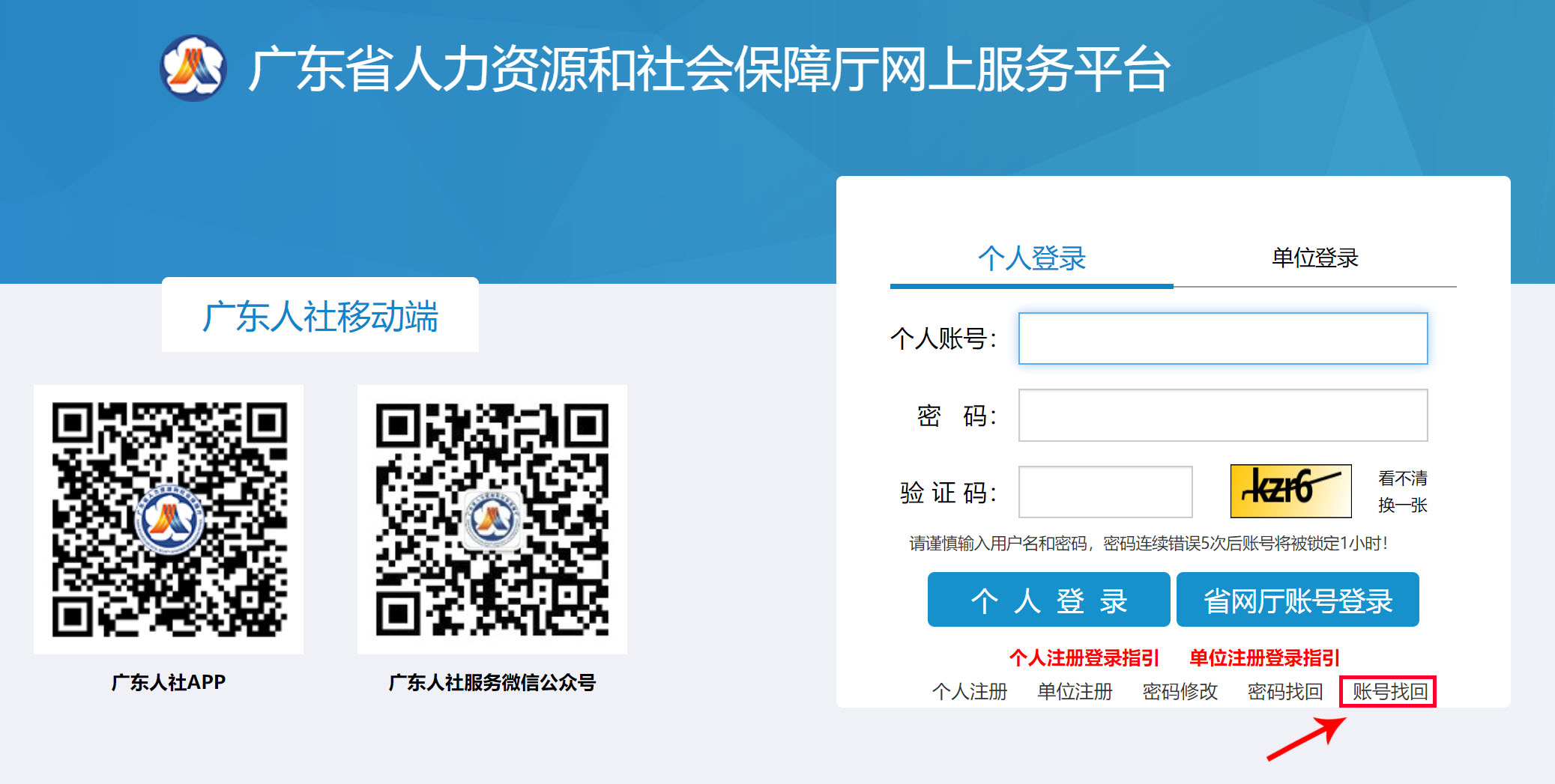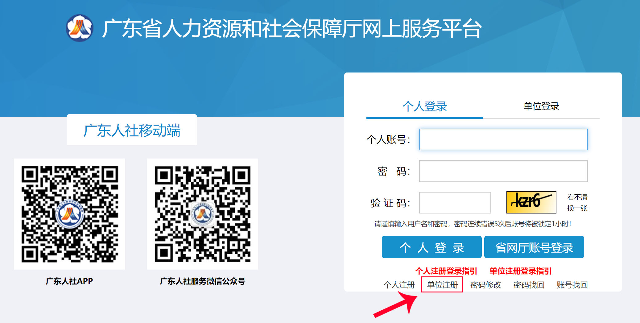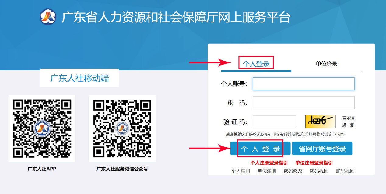 廣東省人力資源和社會保障廳網上服務平臺:個人賬號注冊登錄說明