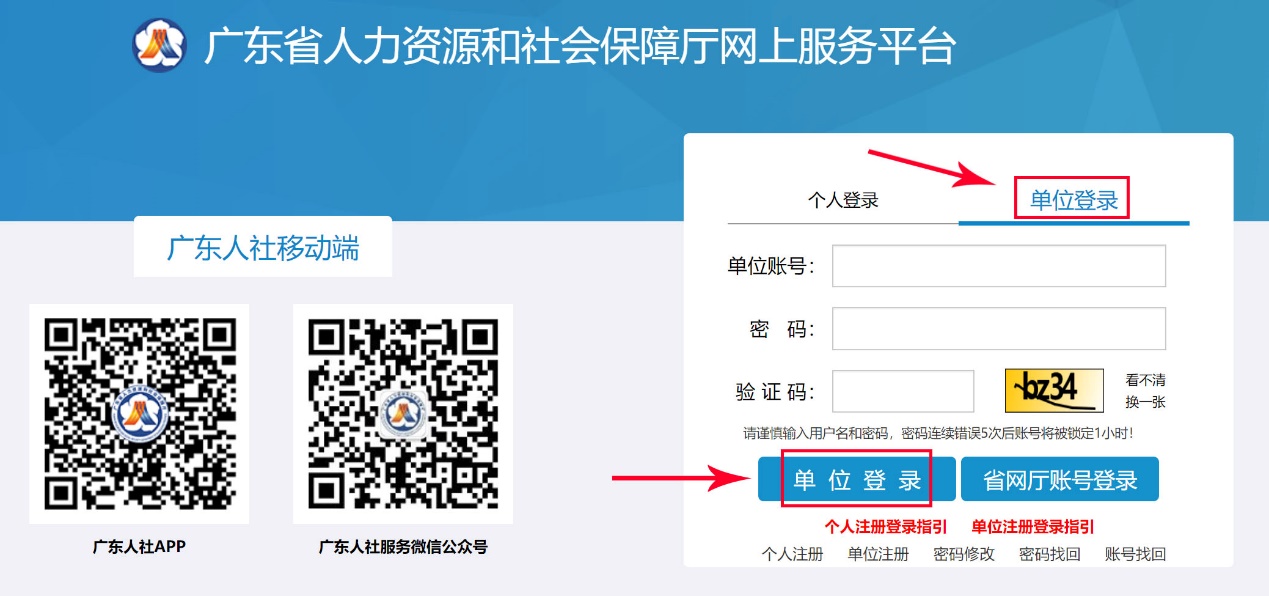 廣東省人力資源和社會保障廳網上服務平臺:企業單位賬號注冊登錄說明: