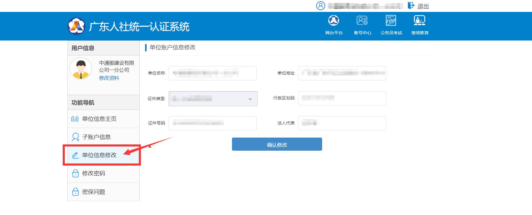 單位信息修改:
