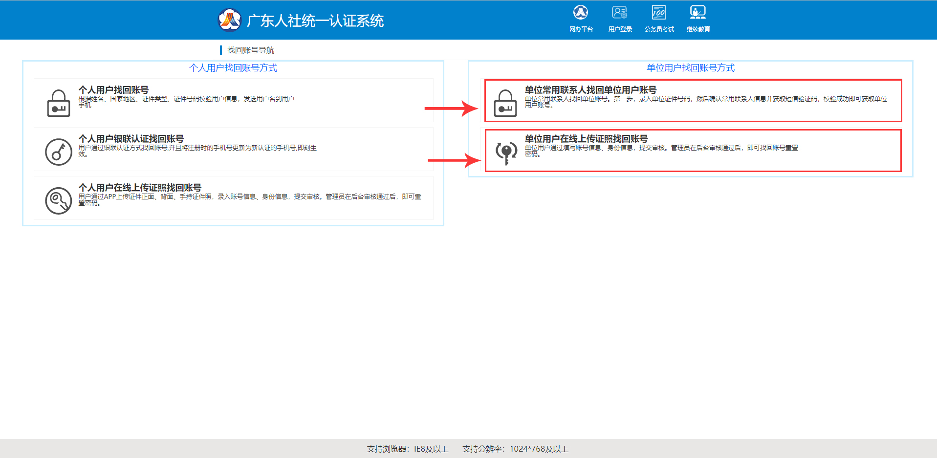 可以在登錄頁面上通過【賬號找回】,通過單位常用聯系人或者上傳證照材料申訴找回單位賬號