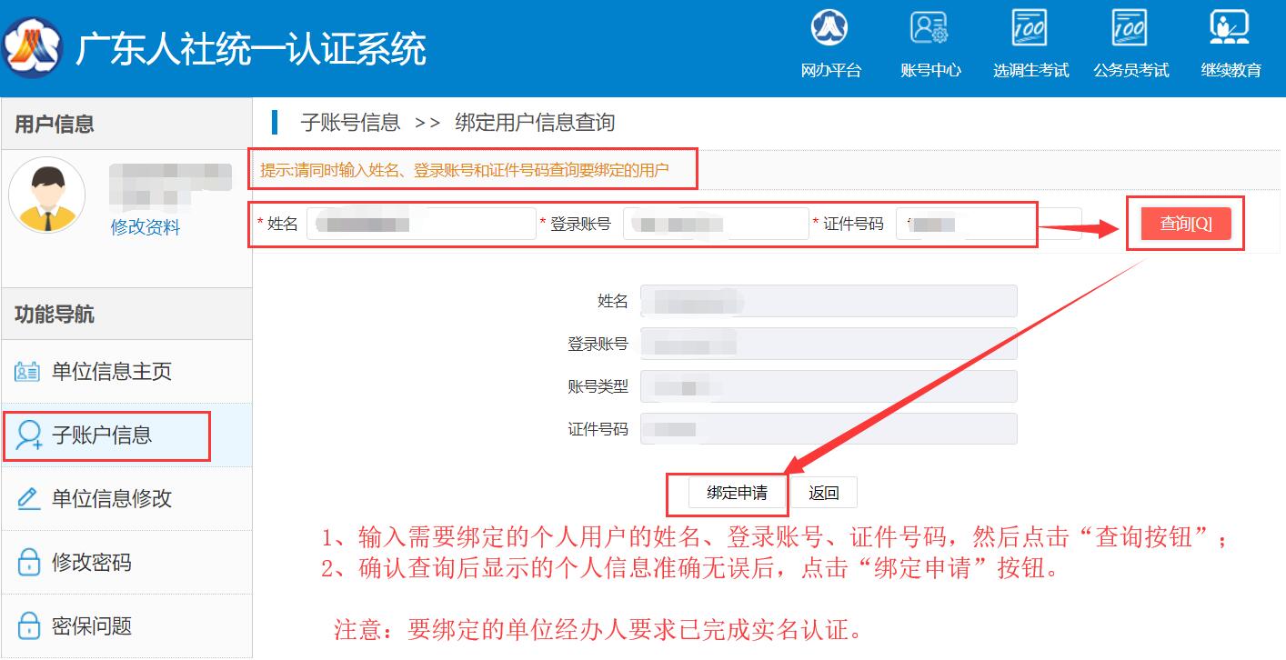 3. 個人賬號通過單位賬號的綁定