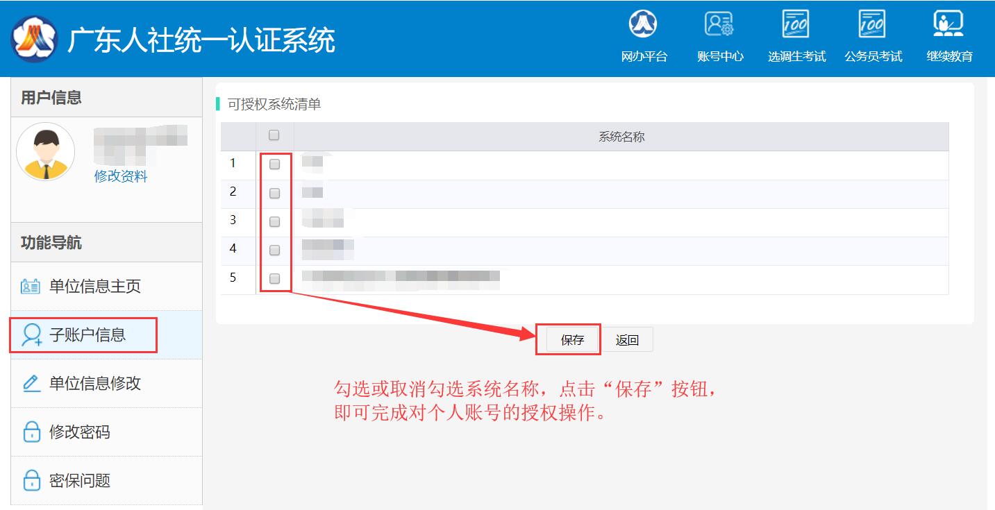 單位用戶登錄單位賬號( 切記:此處是單位賬號登錄),選擇“子賬戶信息”