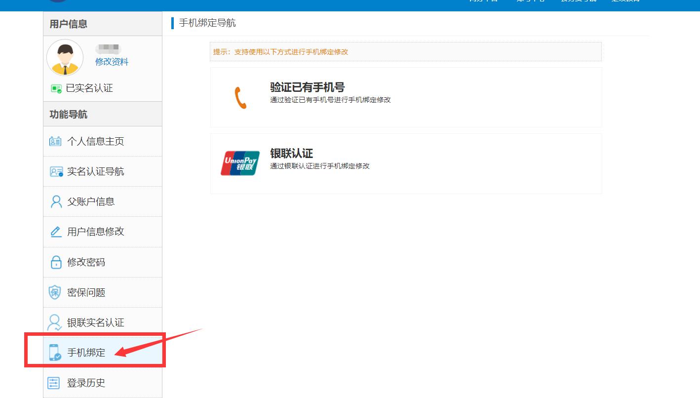 實名認證后,如需更換手機號碼,點擊下圖箭頭所示處,在右側按照指引可以修改手機號碼: