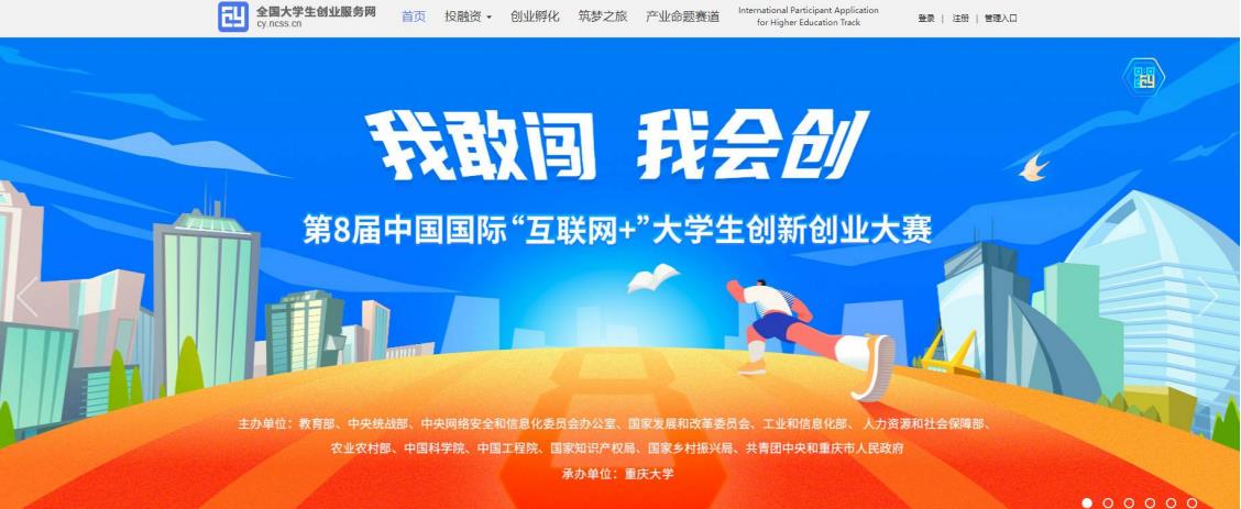 l 頂部欄:包括首頁、投融資、創(chuàng)業(yè)孵化、筑夢之旅、產業(yè)命題賽道、International Participant Application for HigherEducation Track,點擊分別對應進入相應版塊或活動頁面。