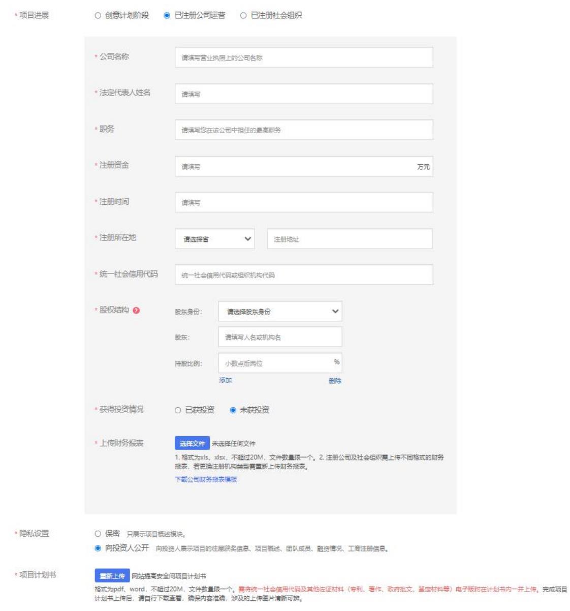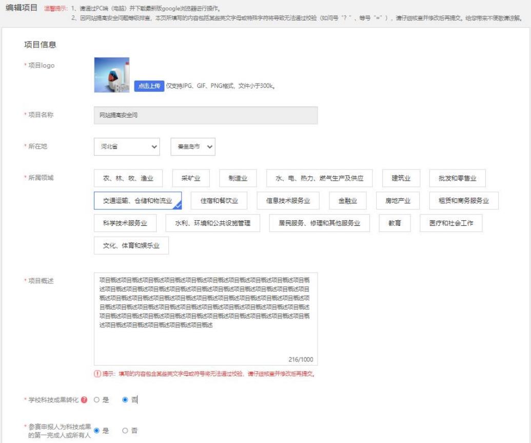 第一步:填寫項目必填信息