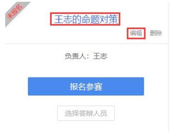 個人中心點擊“XX 的命題對策”,可以查看參賽信息、對策信息、團隊信息等信息。