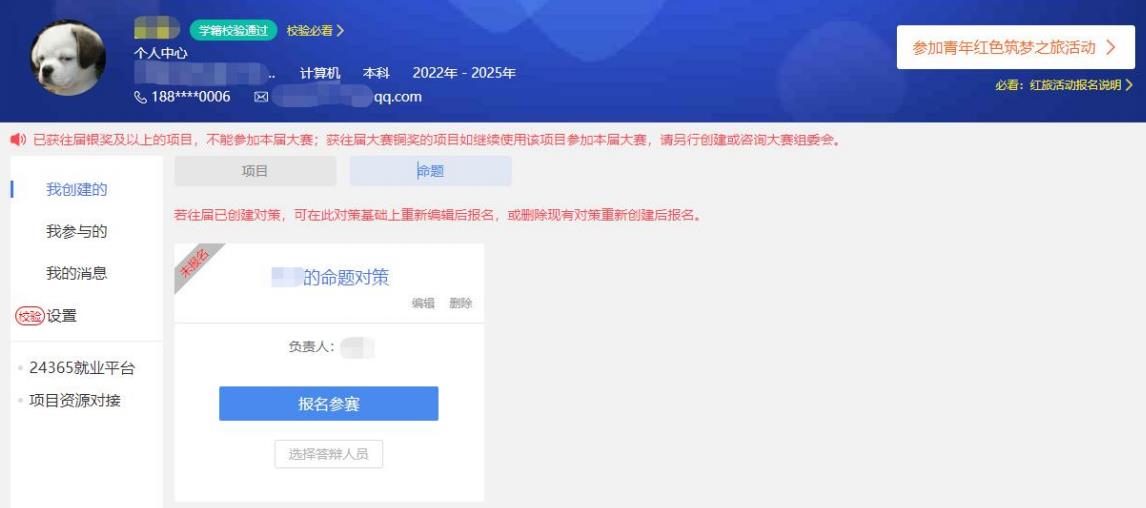 請注意:報名參賽后團隊負責人如進行賬號的注銷、變更操作,項目信息將自動刪除,如要進行賬號注銷和變更請在報名參賽