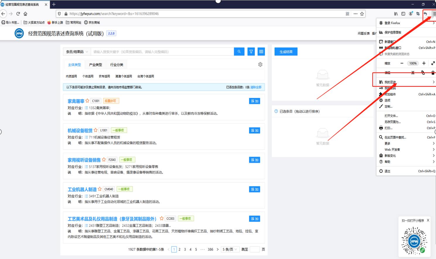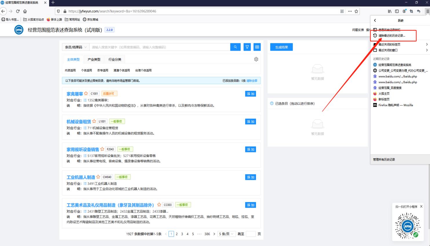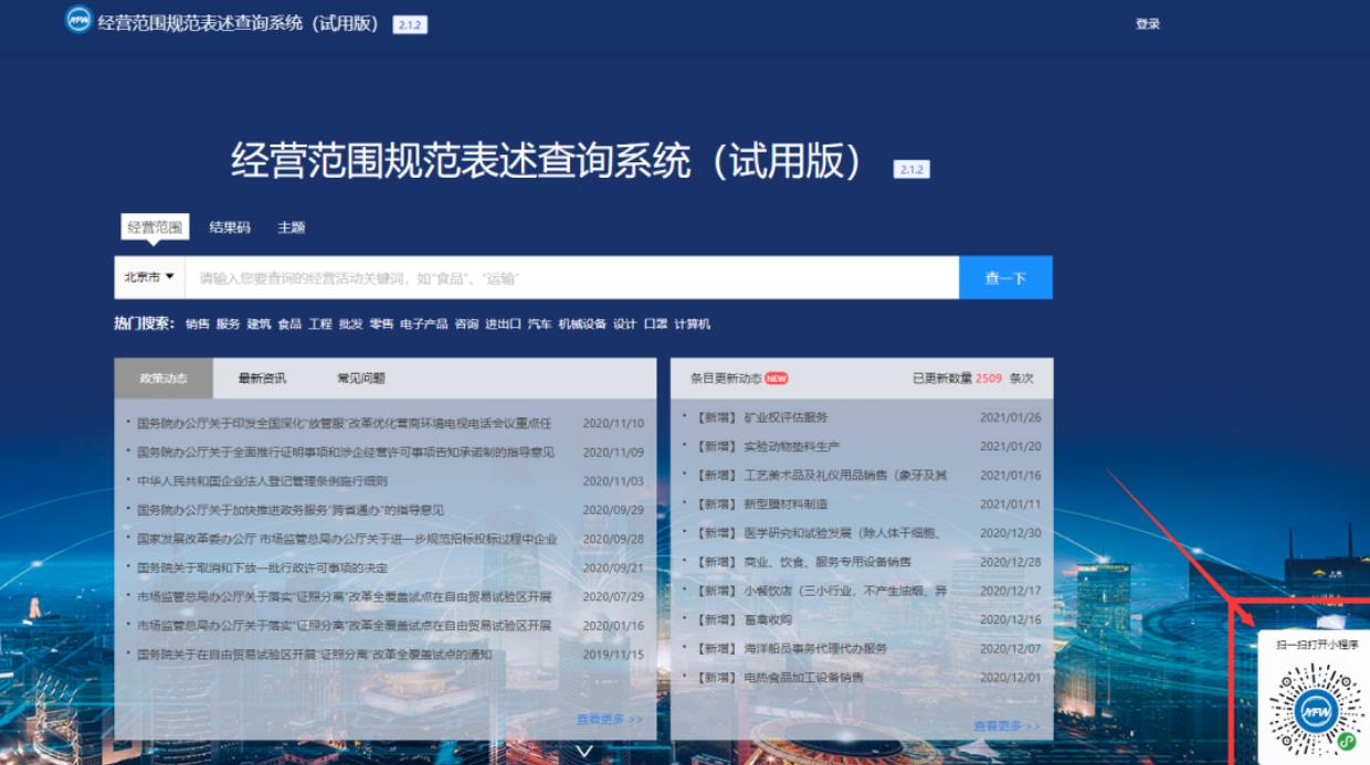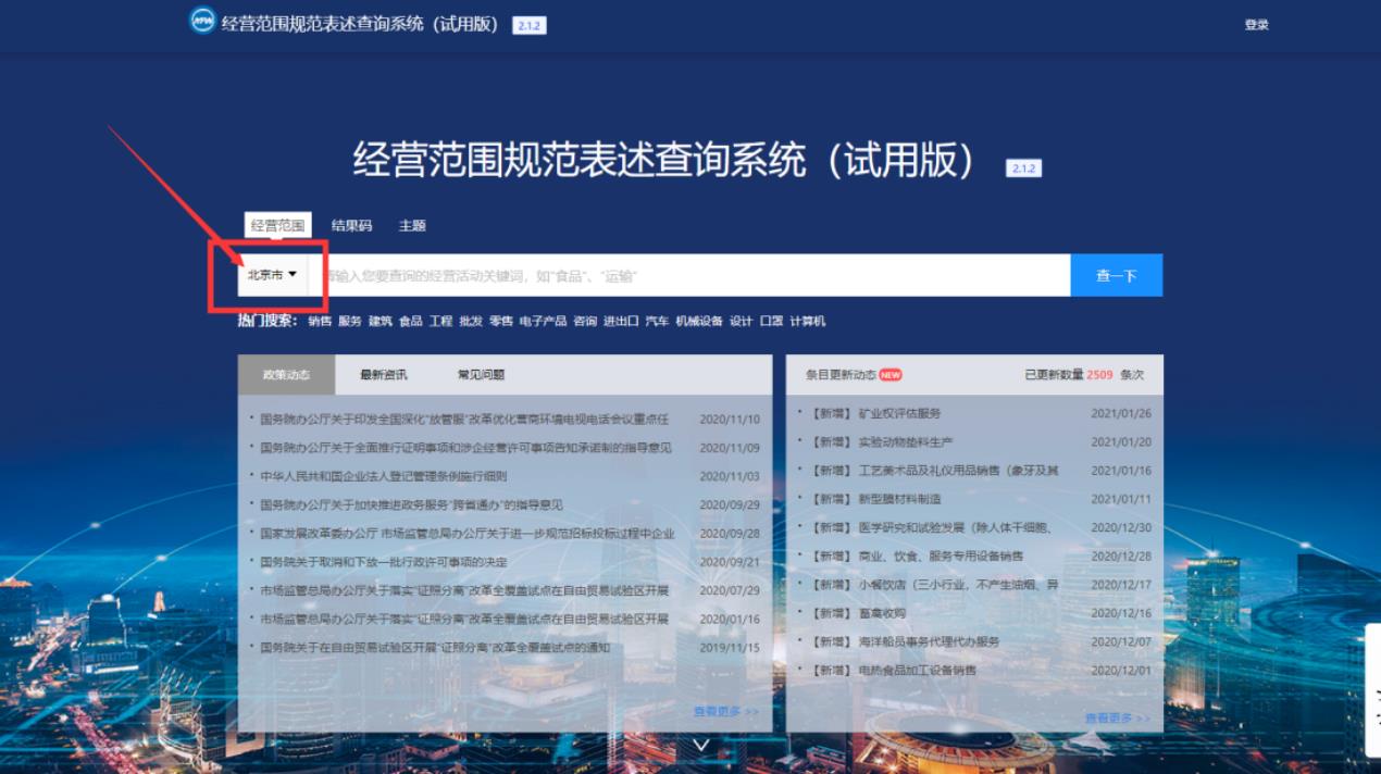 經(jīng)營(yíng)范圍規(guī)范表述查詢系統(tǒng)怎么查經(jīng)營(yíng)范圍?(pc端)