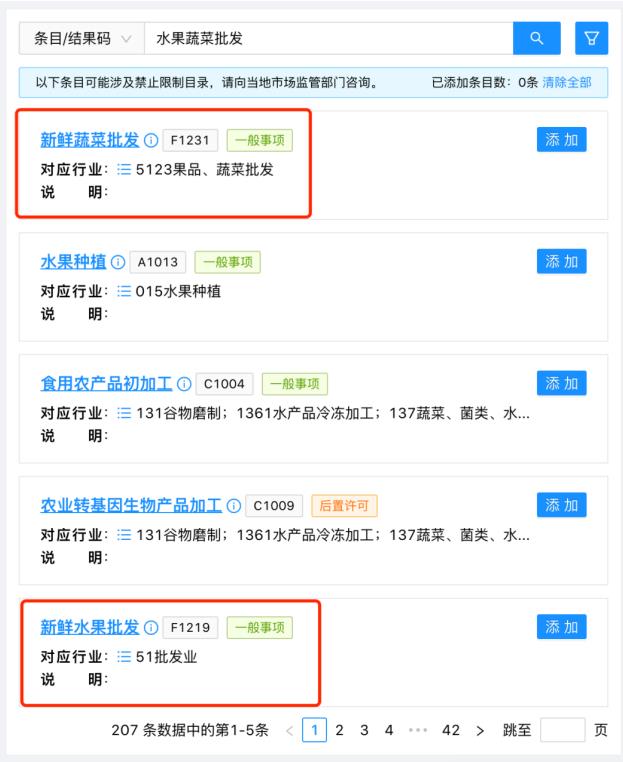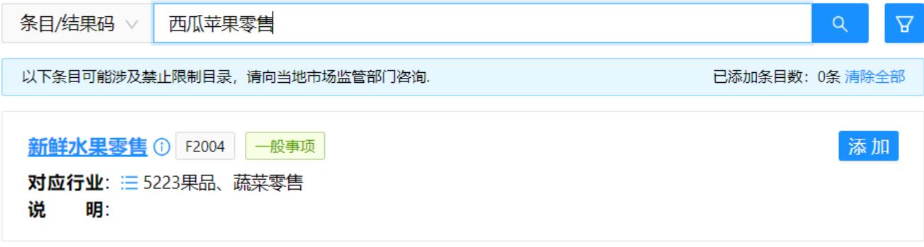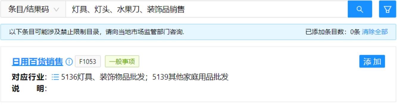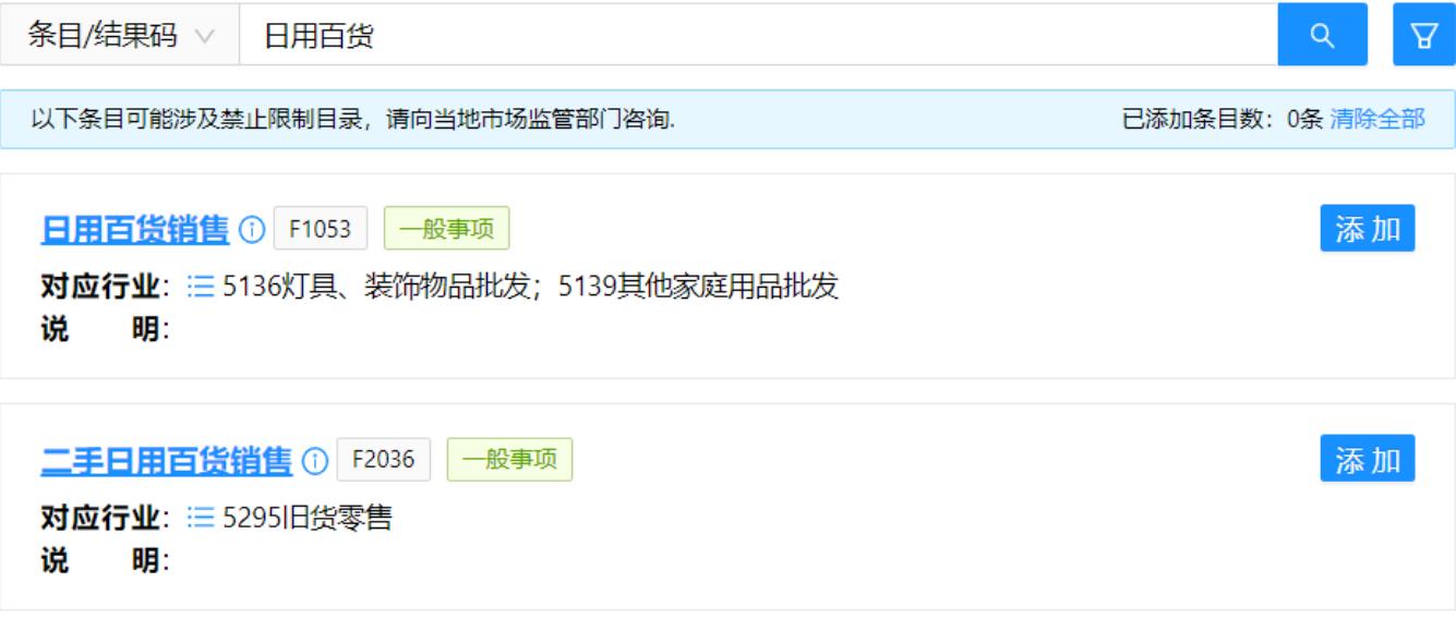 也可以輸入其中的某一個(gè)經(jīng)營(yíng)內(nèi)容進(jìn)行搜索。比如
