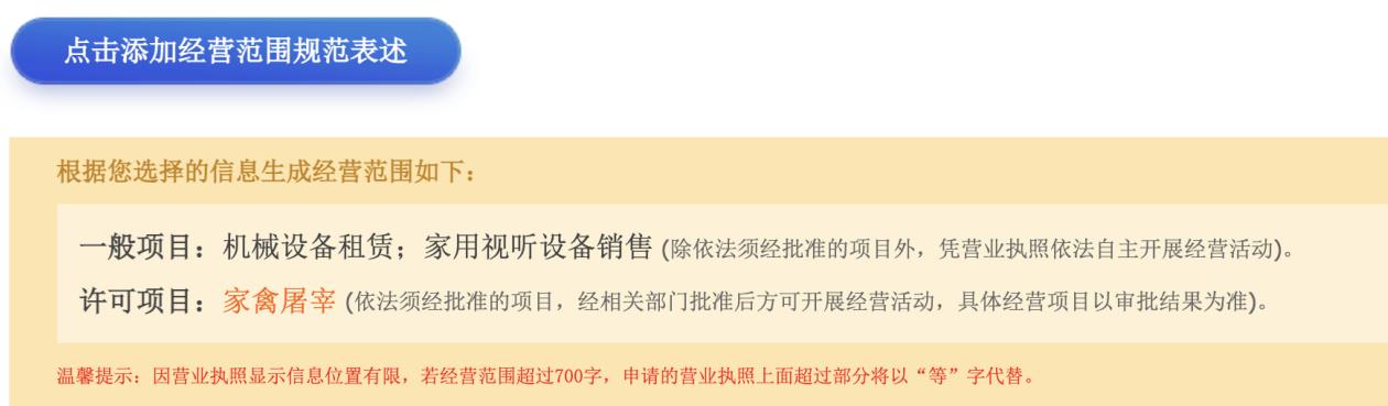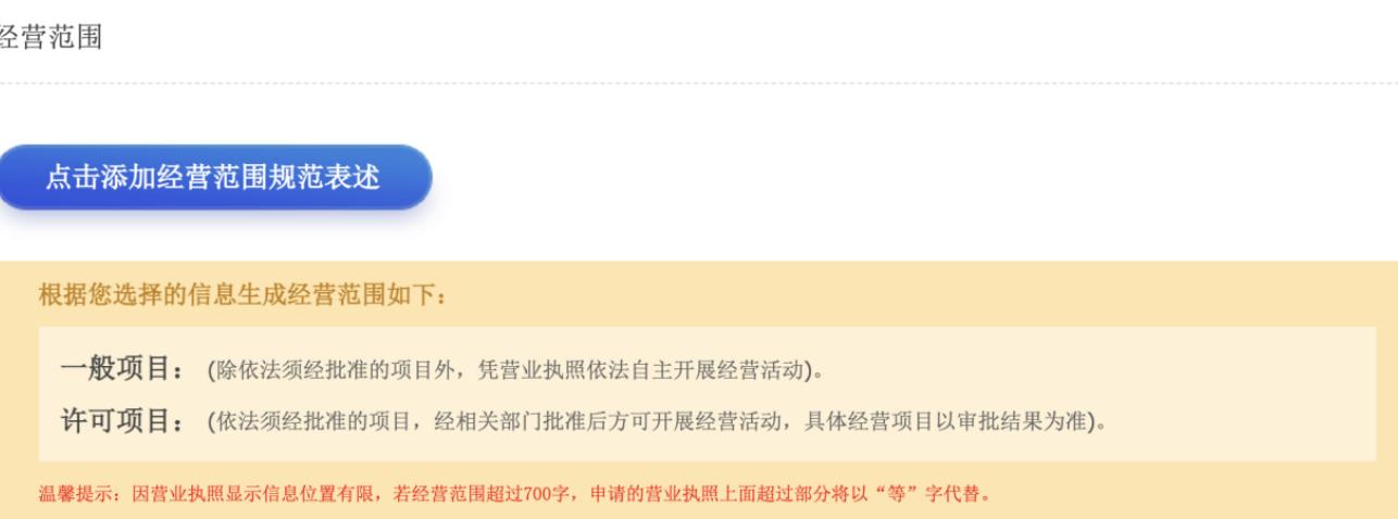 點(diǎn)擊添加經(jīng)營(yíng)范圍規(guī)范表述按鈕,打開經(jīng)營(yíng)范圍選擇彈窗。
