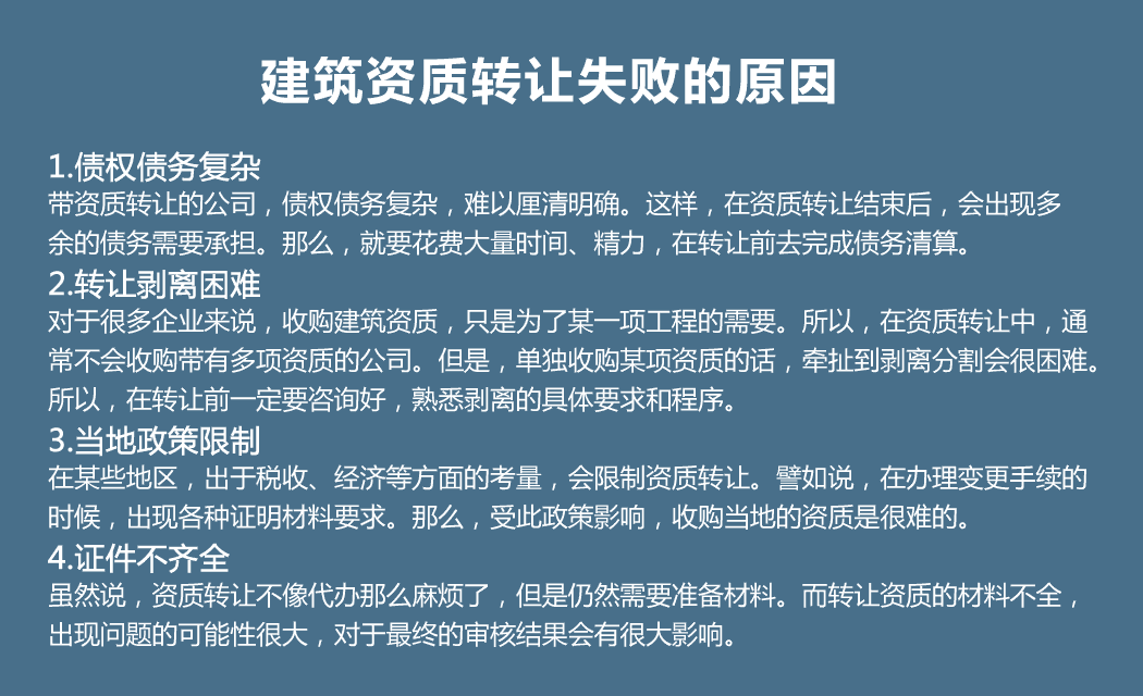陜西東睿企業資質代理服務有限公司提供西安建筑資質二級轉讓,建筑施工企業資質的變更增項升級工程公司資質轉讓咨詢以及企業資質托管注銷等多項專業事務;主要包含:房建工程,電力水利水電,裝飾裝修,市政,環保,電子智能化,公路工程資質等建設工程施工總承包資質和專業承包資質的代理服務;本欄目詳細介紹西安建筑資質轉讓的流程費用及需要具備的主要條件資料,希望對大家有所幫助,東睿企服力求為廣大客戶提供專業優質的資質服務。