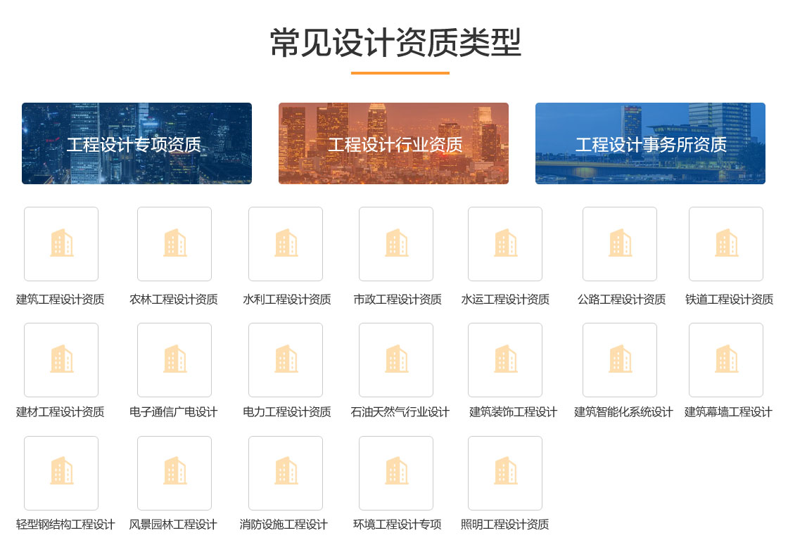 東睿工程設計資質代理中介公司提供設計資質代辦理,工程設計資質代理公司專業辦理甲級乙級行業資質和專業設計資質以及專項設計甲級乙級資質的轉讓、資質增項、資質升級以及工程設計資質的申請業務相關咨詢服務;主要包含:市政工程,房建工程,電力水利水電,裝飾裝修,公路工程,消防工程,建筑勞務,機電工程,地基工程,通信工程資質等,本欄目詳細介紹工程設計資質的辦理流程費用及需要具備的主要條件資料,希望對大家有所幫助,東睿企服力求為廣大客戶提供專業優質的工程設計資質服務。