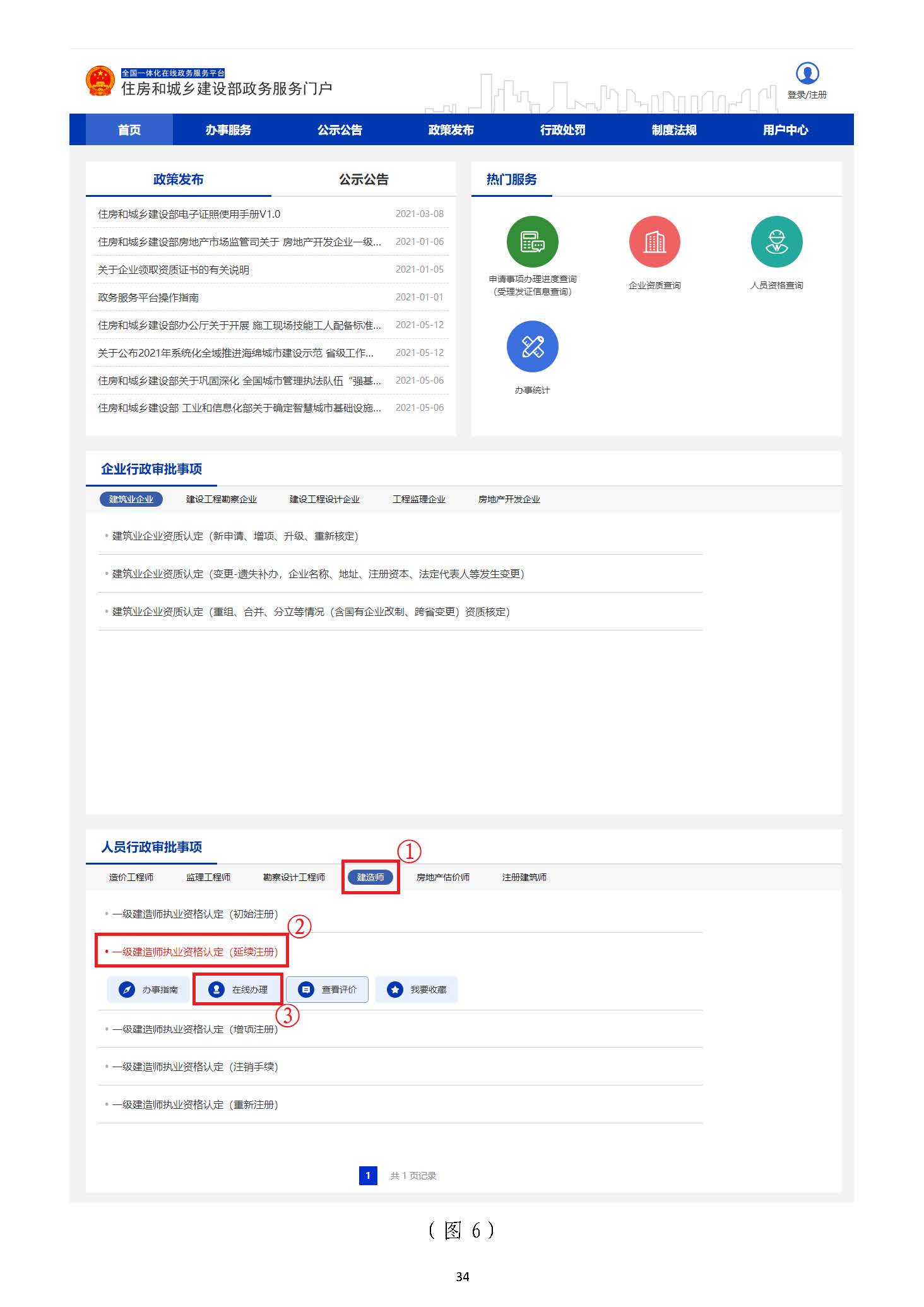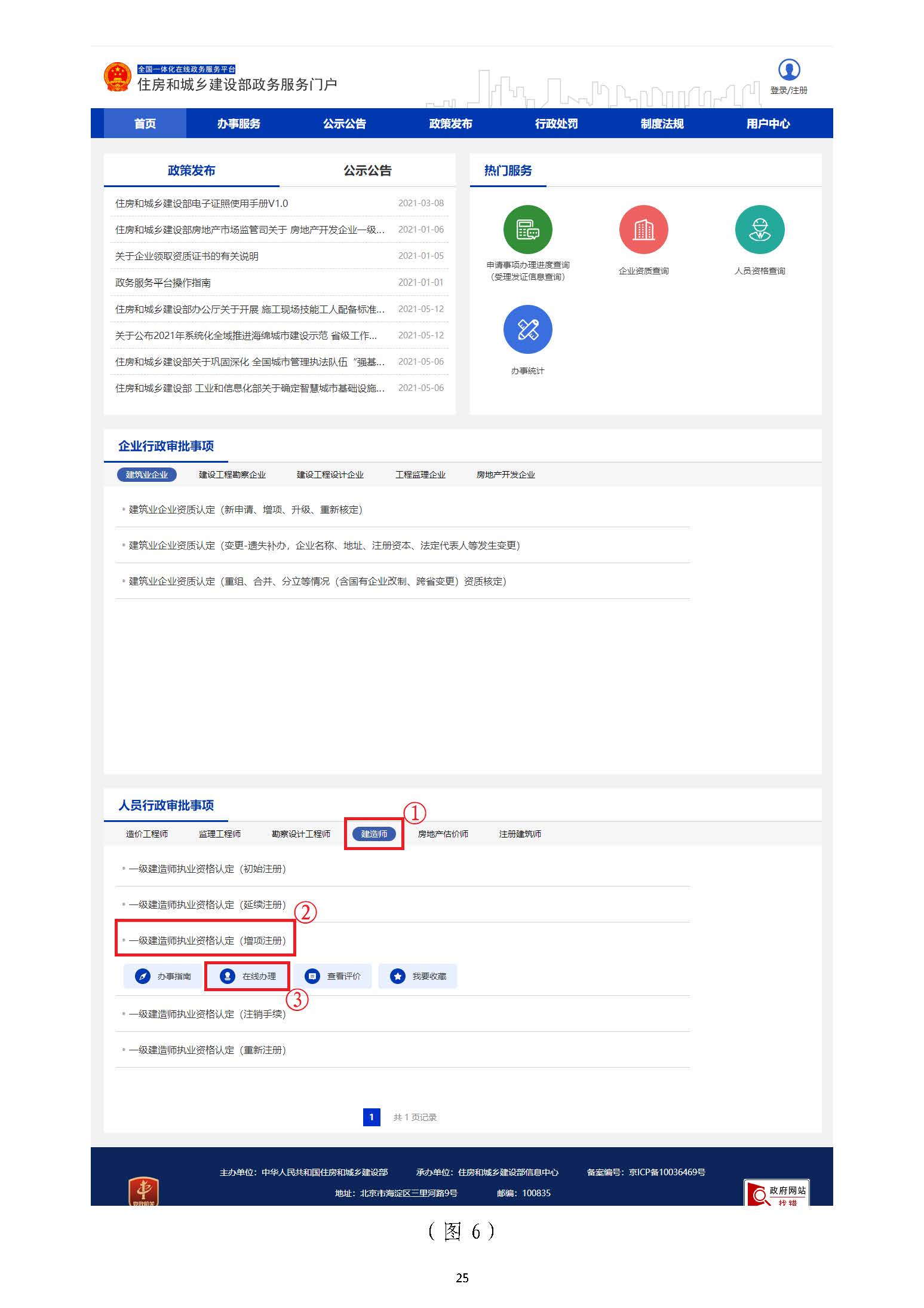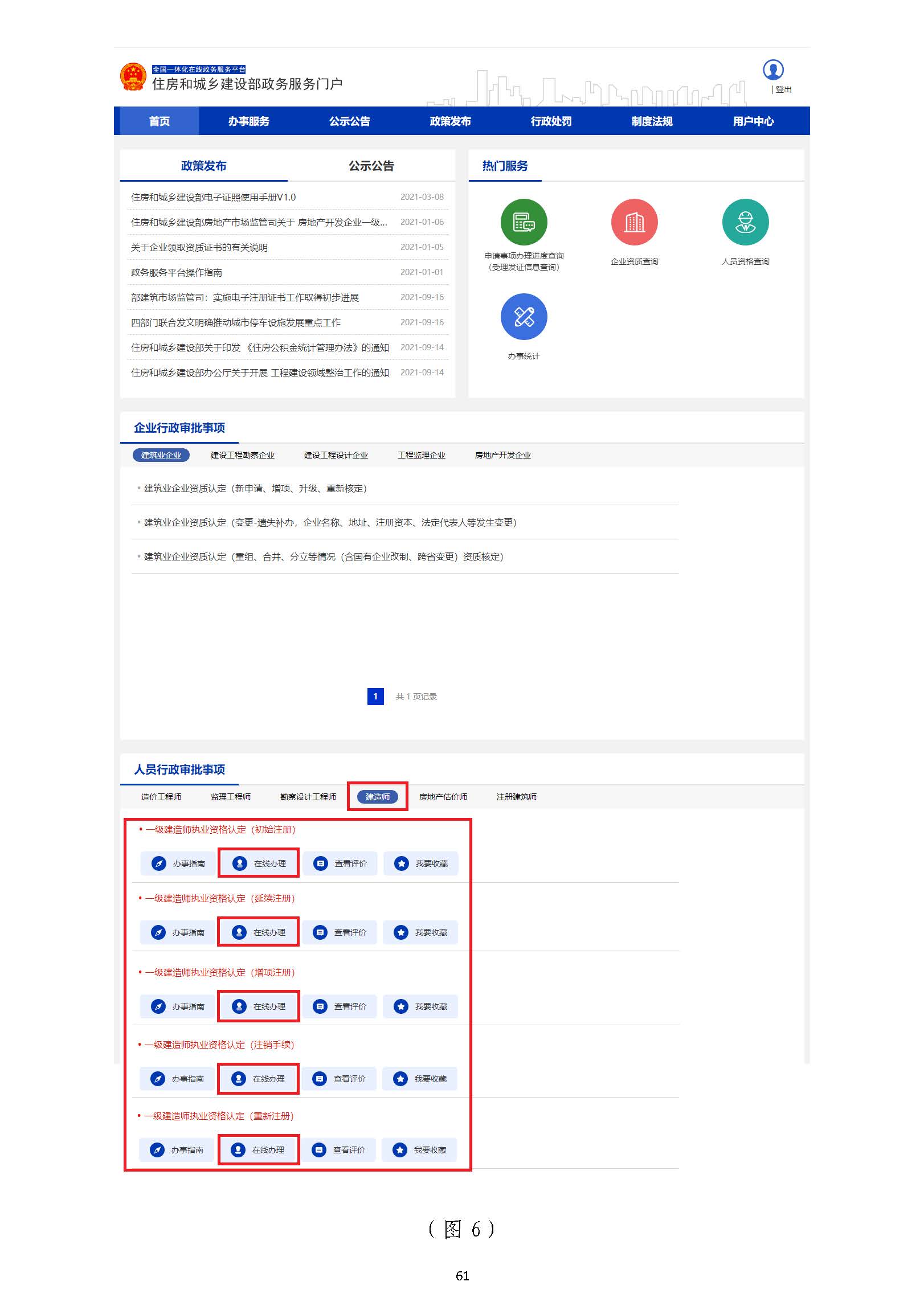 在“住房和城鄉(xiāng)建設部政務服務門戶”頁面(圖