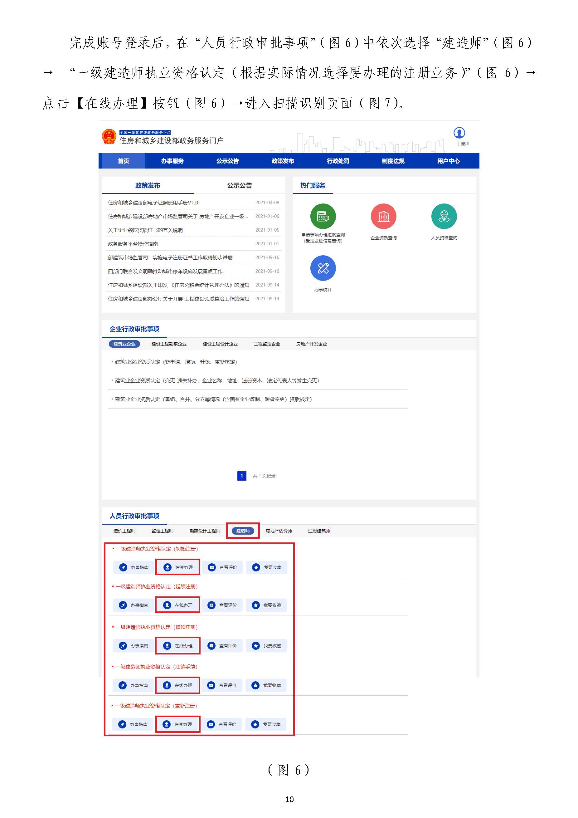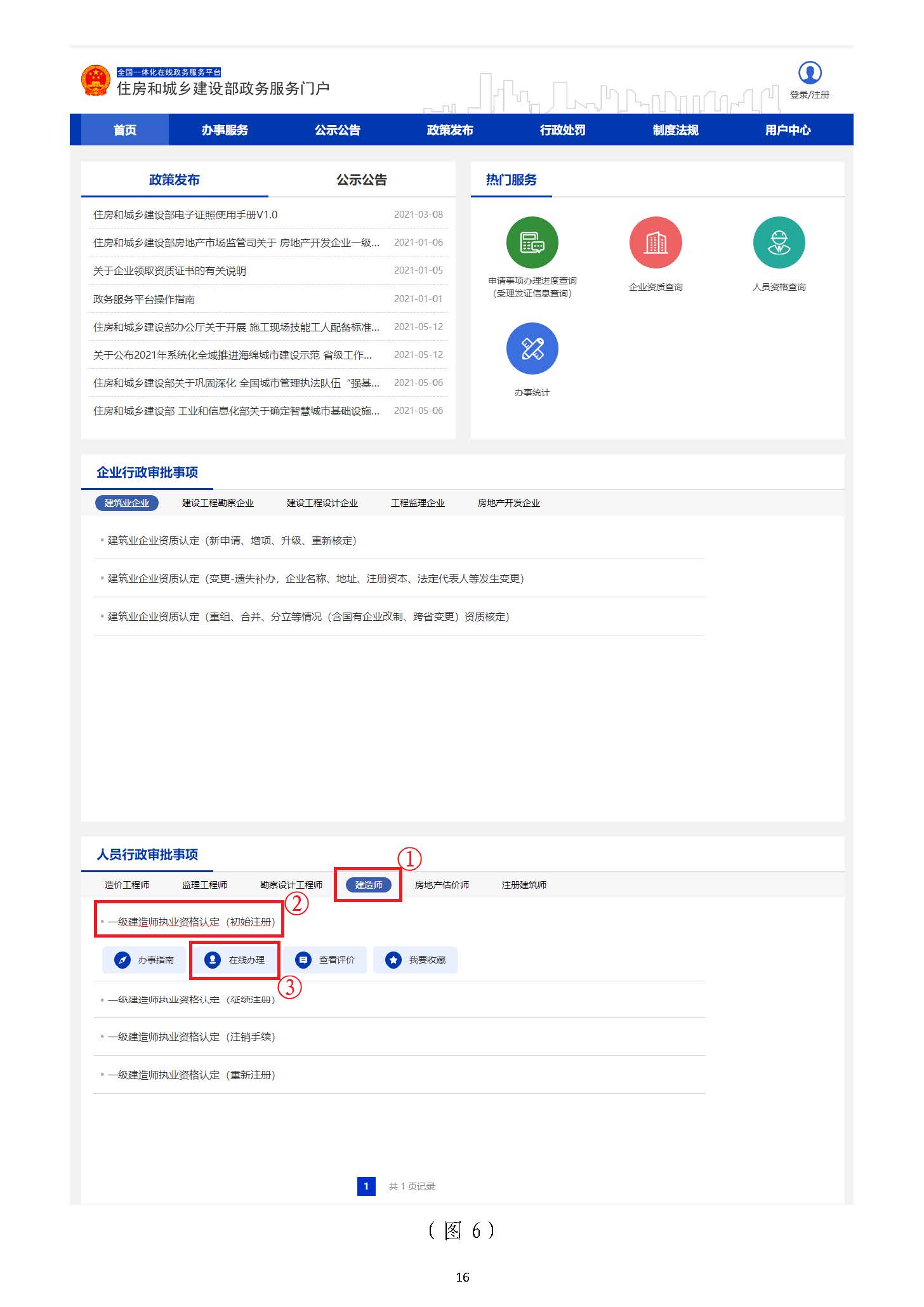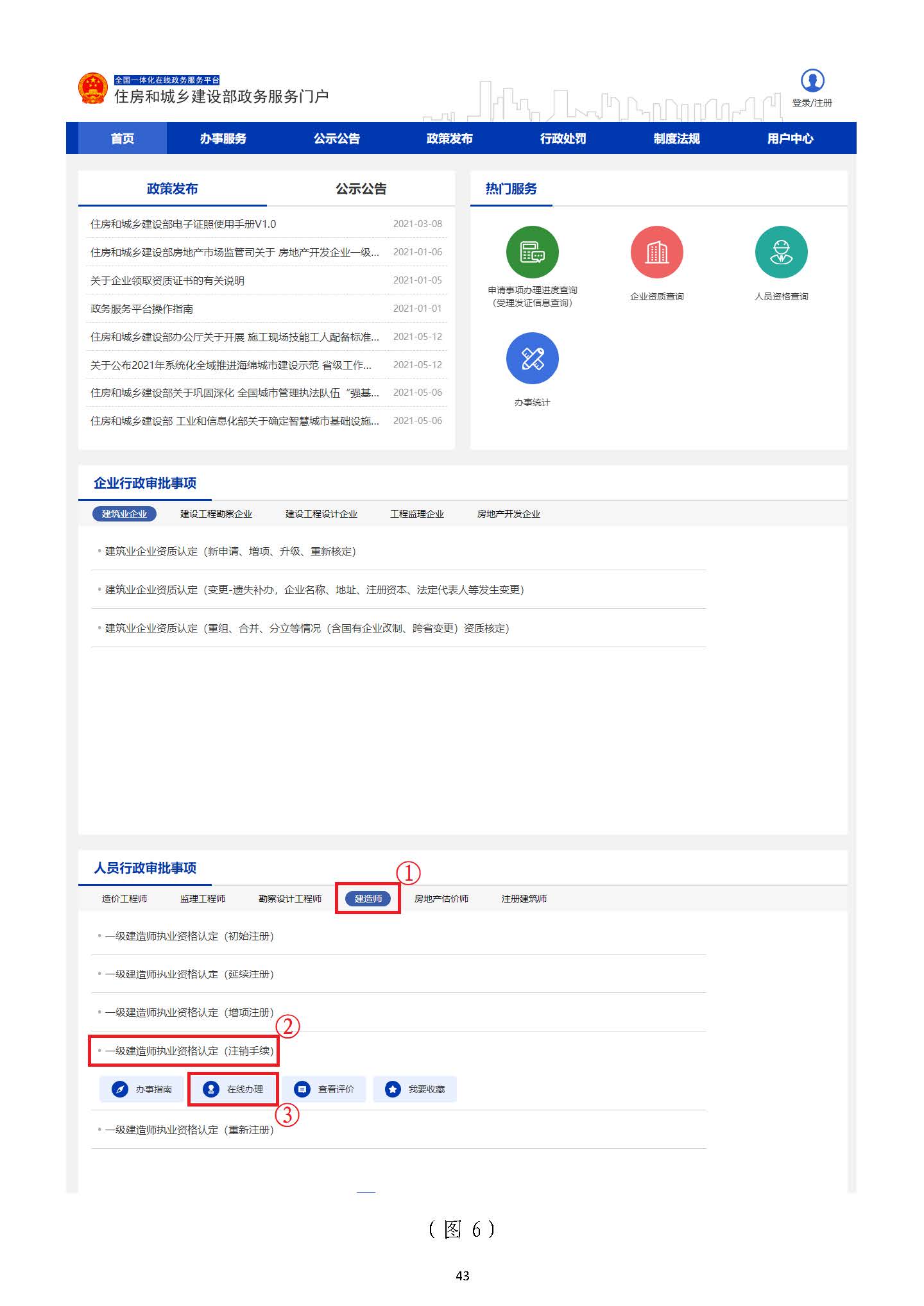 在“住房和城鄉(xiāng)建設部政務服務門戶”頁面(圖