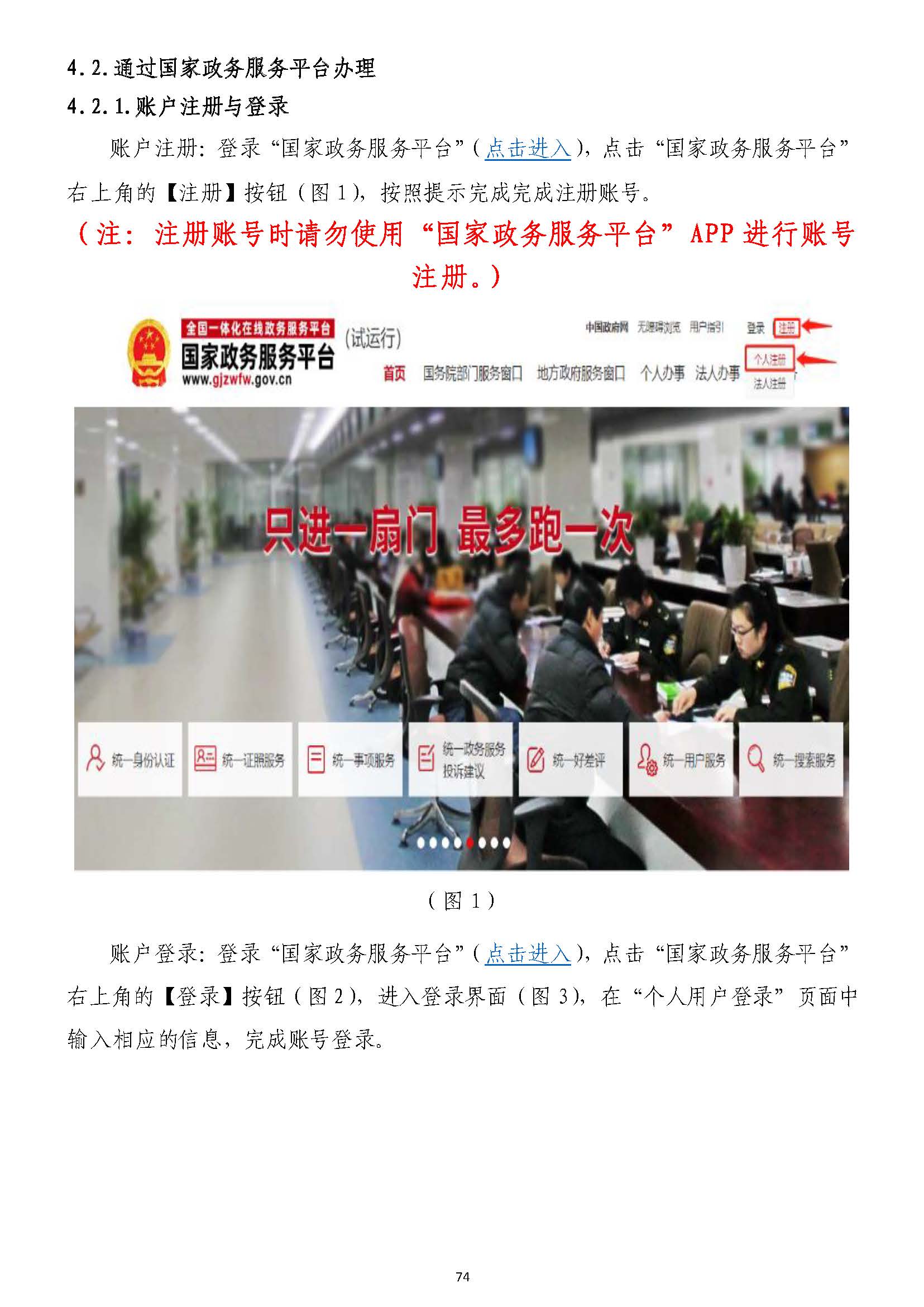 4.2.通過通過國家政務服務平臺辦理國家政務服務平臺辦理 ............................................................................................................ 7474