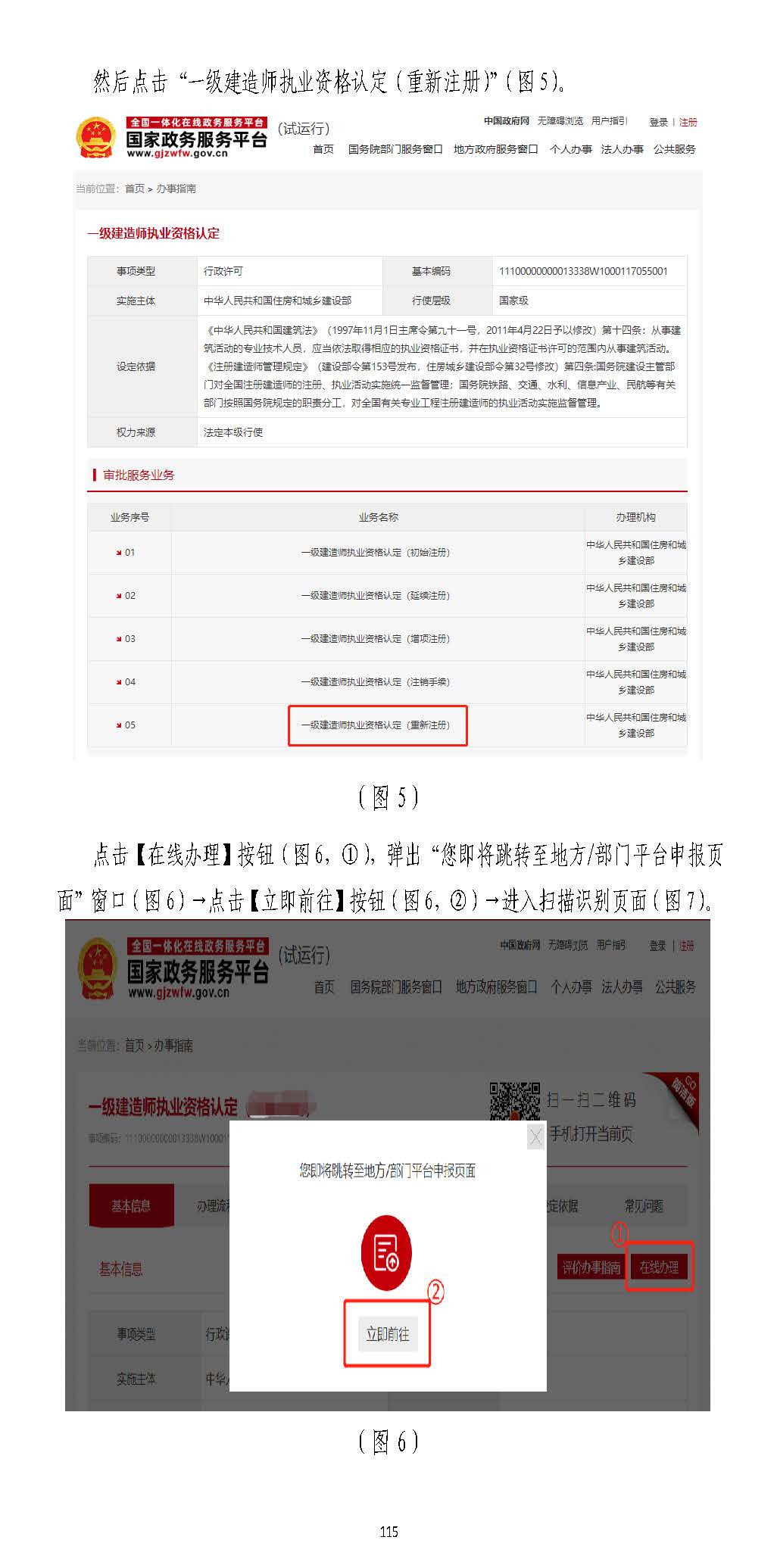 然后點擊“一級建造師執(zhí)業(yè)資格認定(重新注冊)”(圖”(圖55)。)。