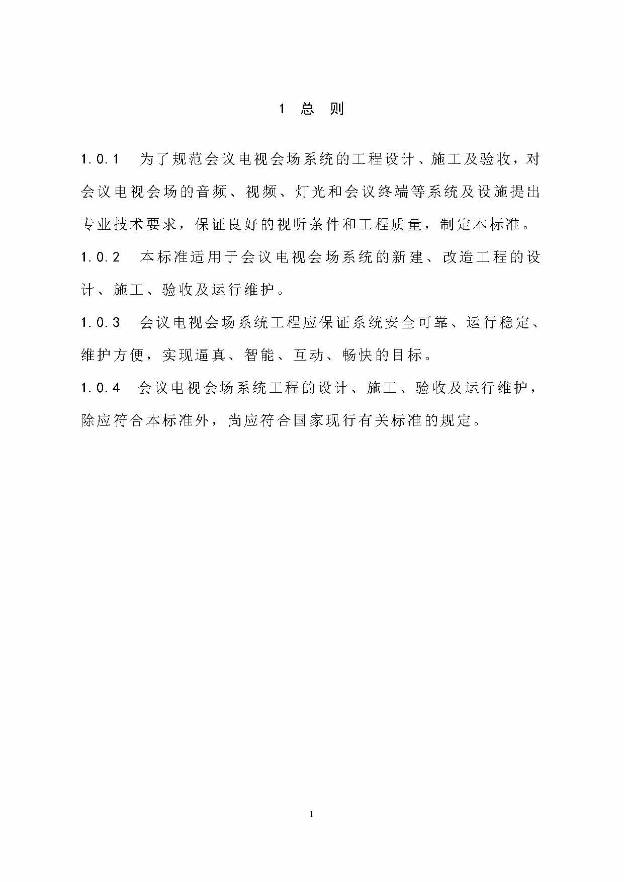 1.0.4 會議電視會場系統工程的設計、施工、驗收及運行維護,除應符合本標準外,尚應符合國家現行有關標準的規定。