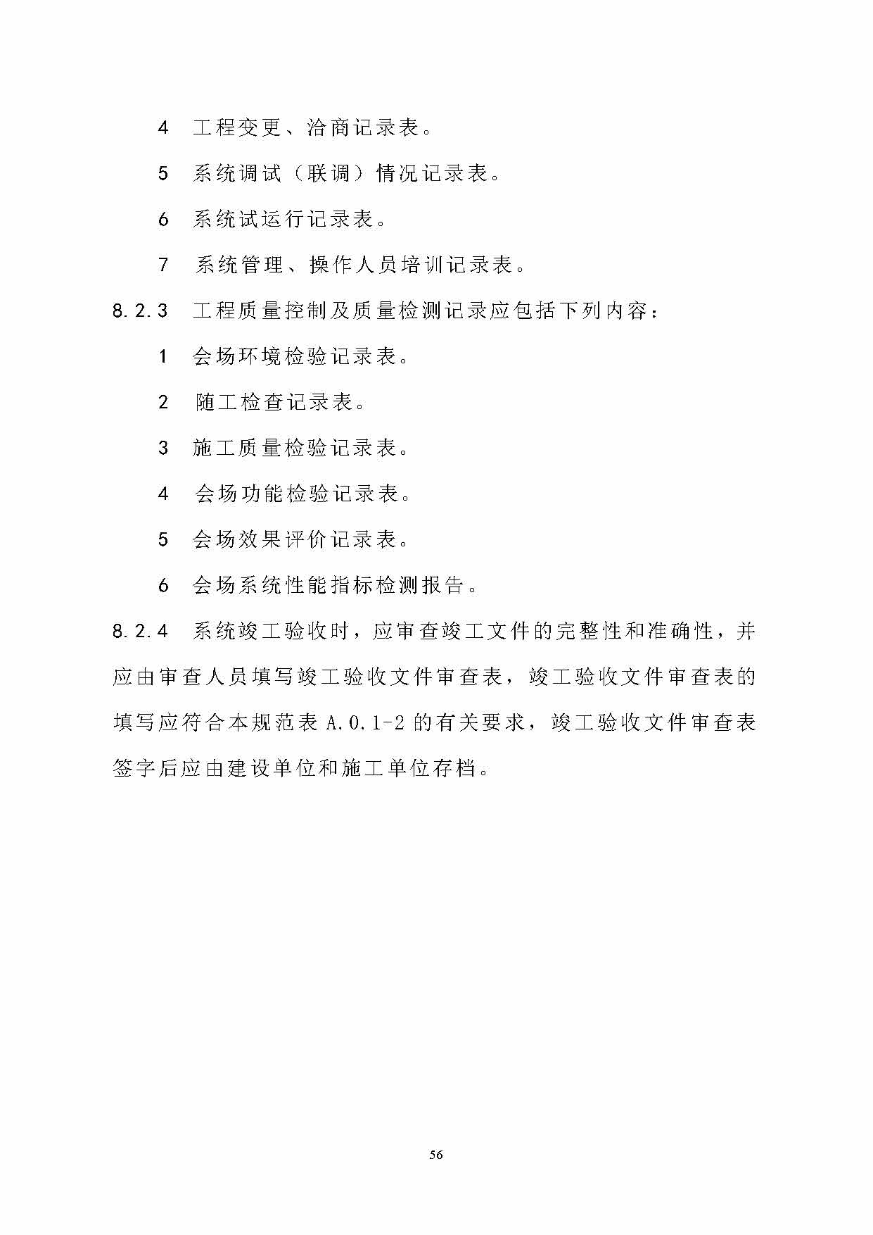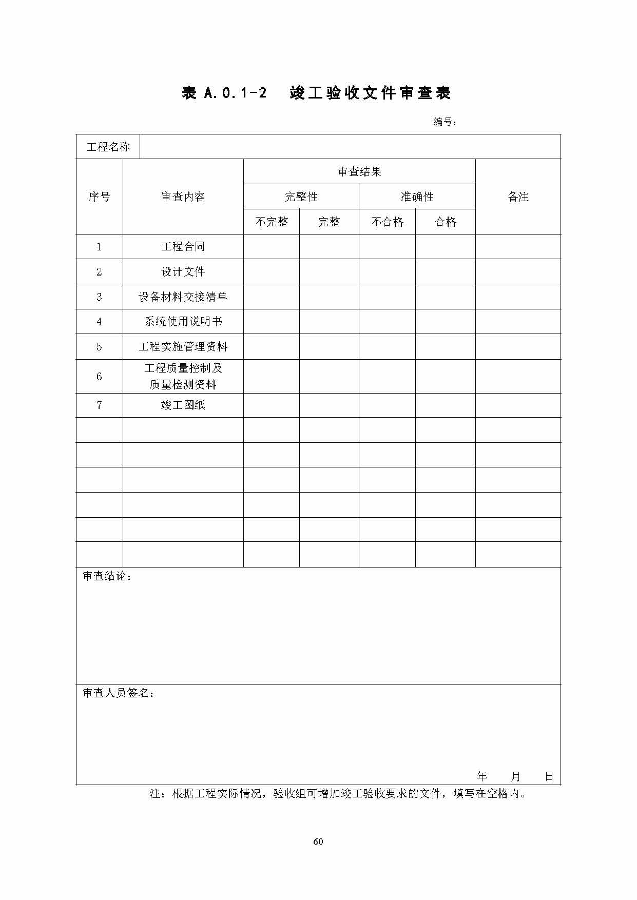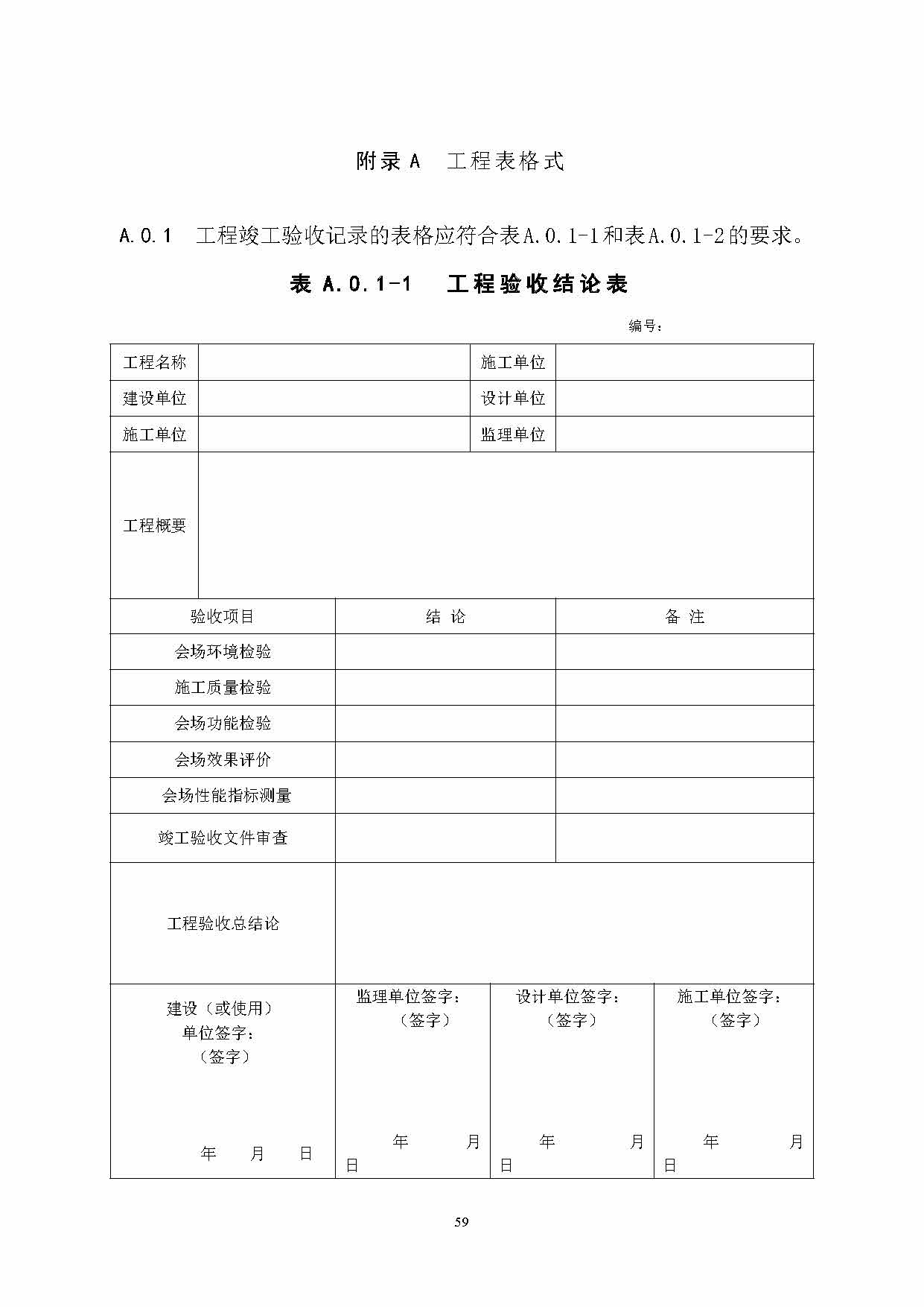 9.在附錄A工程表格中保留了對會場系統工程竣工驗收表和竣工驗收文件審查表的格式要求,其它內容進行了刪減。