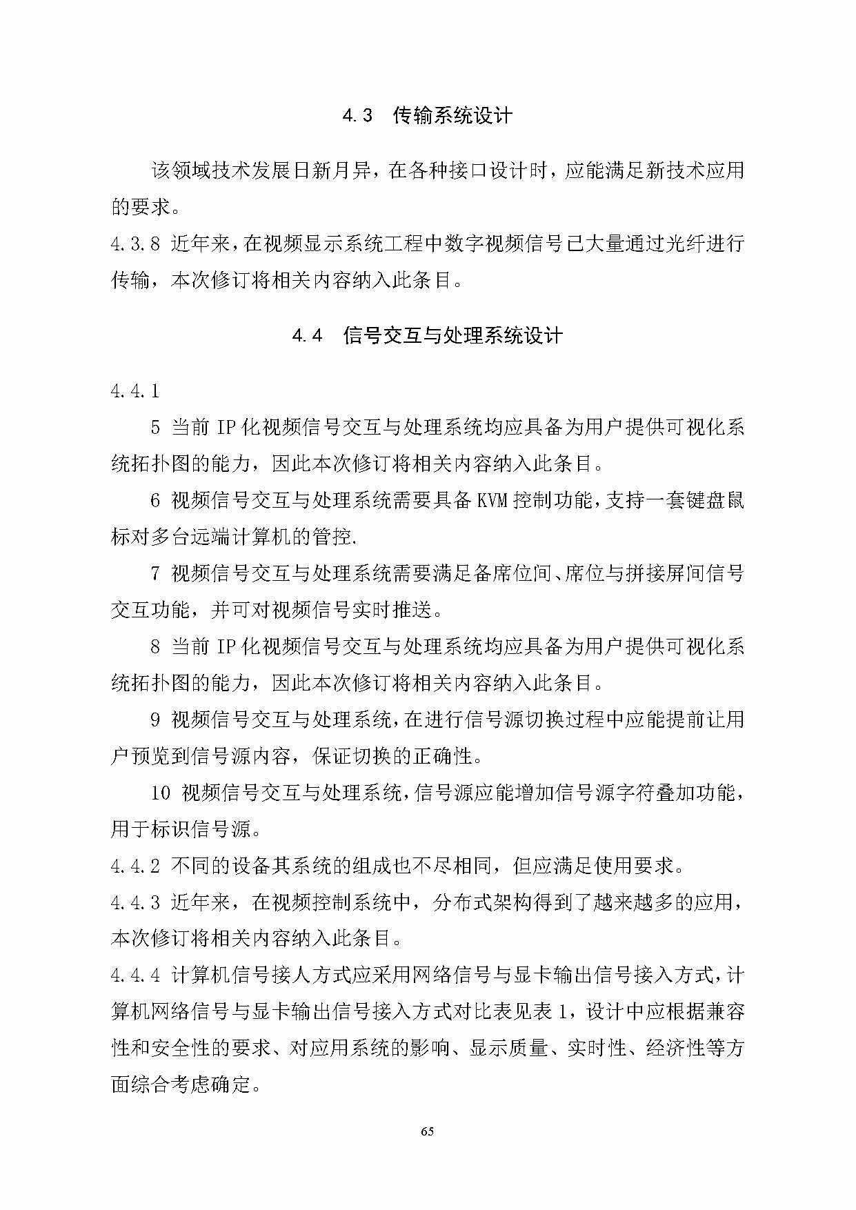 在原標(biāo)準(zhǔn)制定階段,視頻顯示系統(tǒng)涉及到的視頻控制系統(tǒng)當(dāng)時交換與處理能力不強(qiáng),且未出現(xiàn)視頻IP化技術(shù)。經(jīng)過多年發(fā)展,此專業(yè)技術(shù)領(lǐng)域已取得長足進(jìn)步,涌現(xiàn)出拼接、融合、字幕疊加等多種數(shù)字視頻處理技術(shù),視頻IP化、網(wǎng)絡(luò)化日趨完善且進(jìn)一步成熟,需要在本次標(biāo)準(zhǔn)修訂中予以體現(xiàn)。