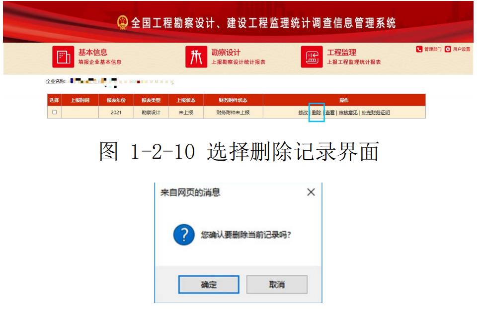 刪除記錄:記錄顯示區(qū)待刪除的記錄,點擊“操作”列的刪除按鈕,彈出刪除提示框,如圖 1-2-10,1-2-11 所示: