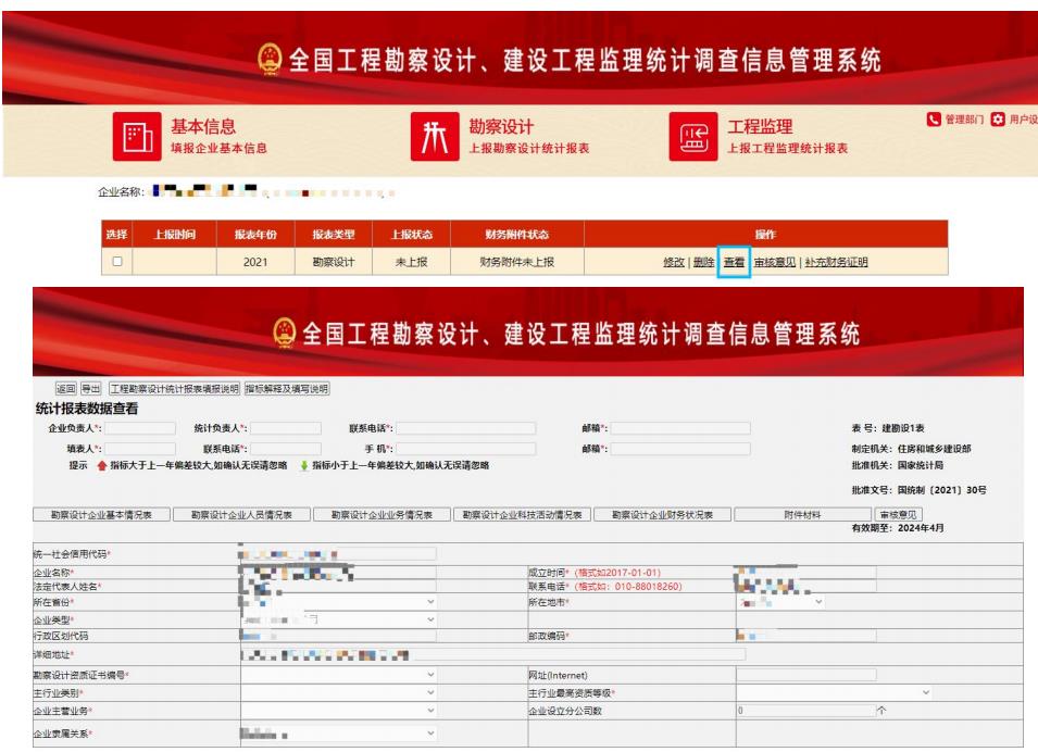 圖 1-2-12 查看勘察設(shè)計報表詳情頁面