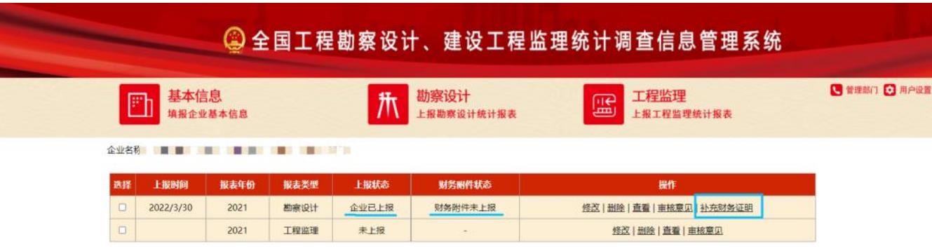 記錄顯示區(qū)待補充財務(wù)證明的記錄,點擊“操作”列的補充財務(wù)證明按鈕,如下圖所示: