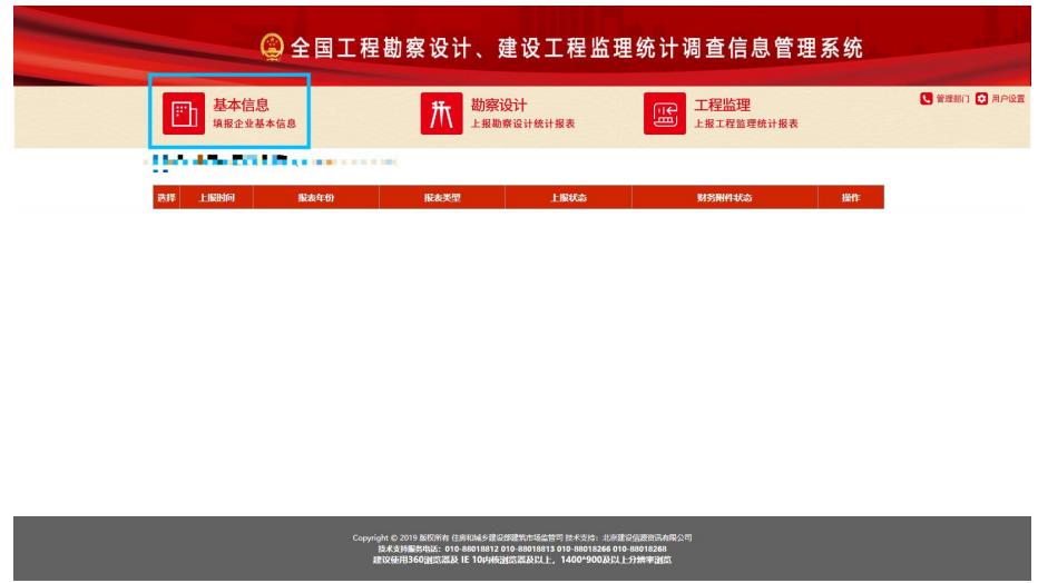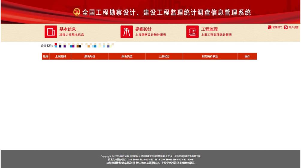 1)主操作按鈕:基本信息、勘察設(shè)計、工程監(jiān)理三個按鈕,用于維護企業(yè)基本信息和添加編輯勘察設(shè)計報表或工程監(jiān)理報表;