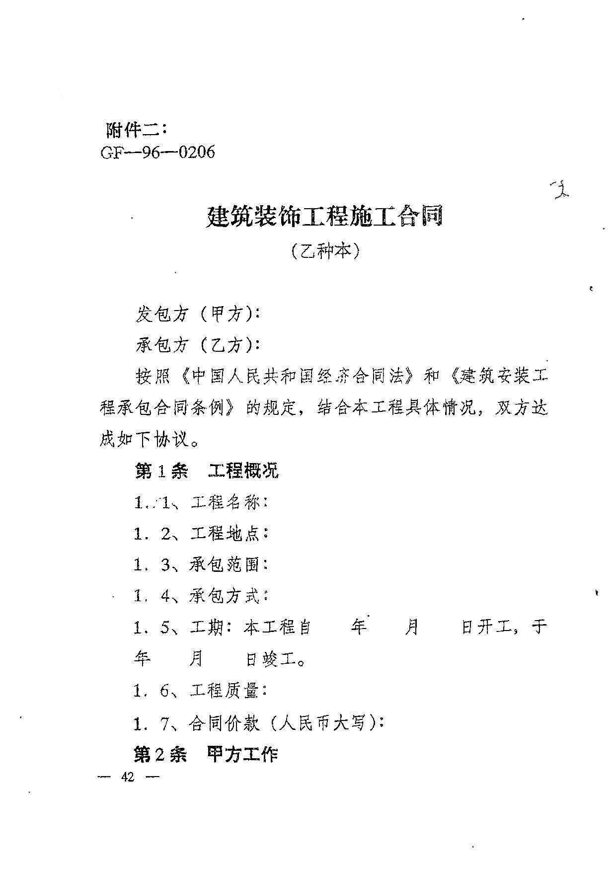 附件二:建筑裝飾工程施工合同(乙種本)(GF-96-0206)