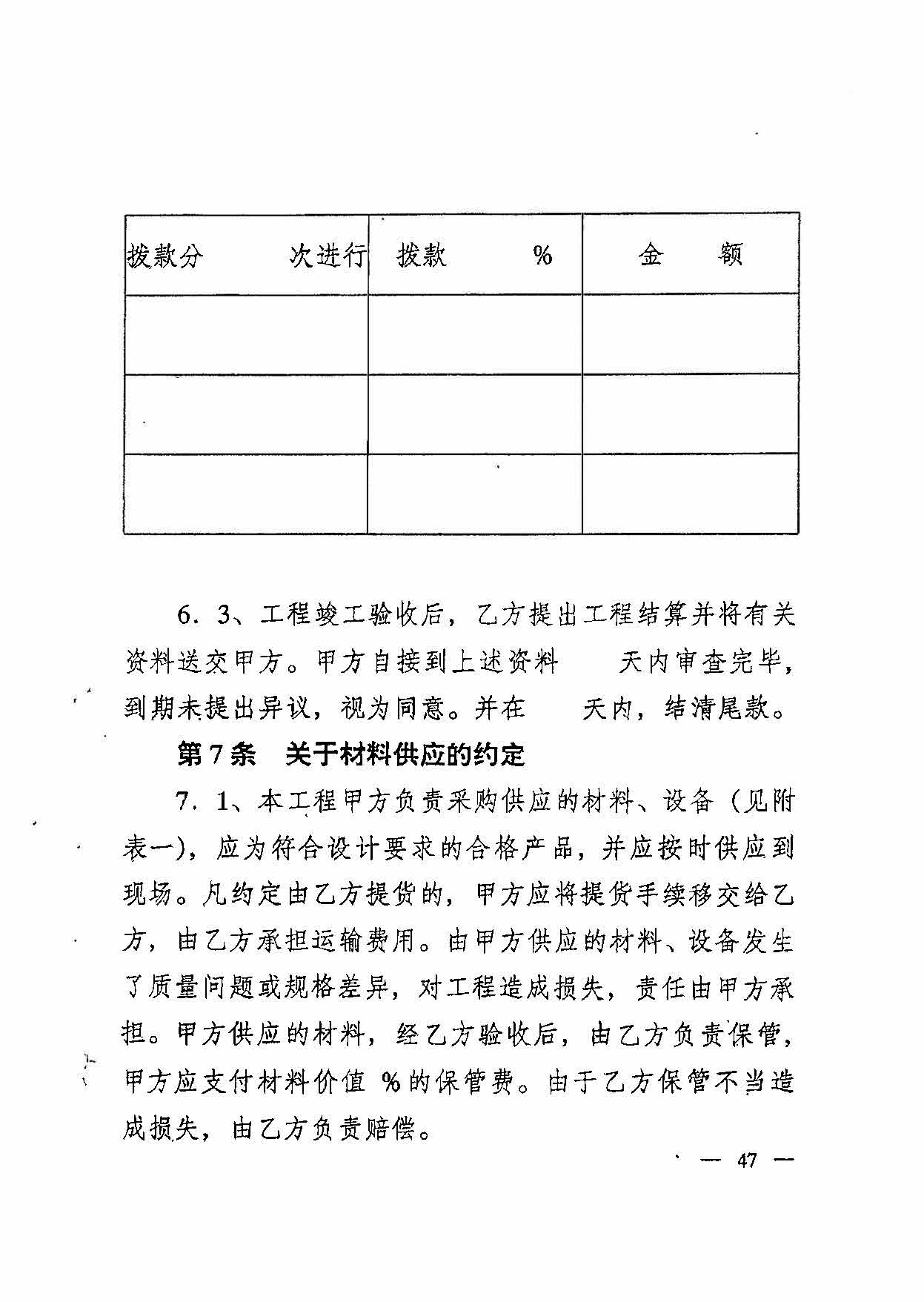 為了規范建筑裝飾工程市場行為,維護承發包雙方權益,現將建筑裝飾工程施工合同甲種本(GF-96-0205)和乙種本(GF-96-0206)兩個示范文本印發給你們。建筑裝飾工程施工合同甲種本適用于大、中型建筑裝飾工程,乙種本適用于小型建筑裝飾工程。大中小型工程的界定,建議以工程造價為界定依據,由各地區、各部門具體規定。