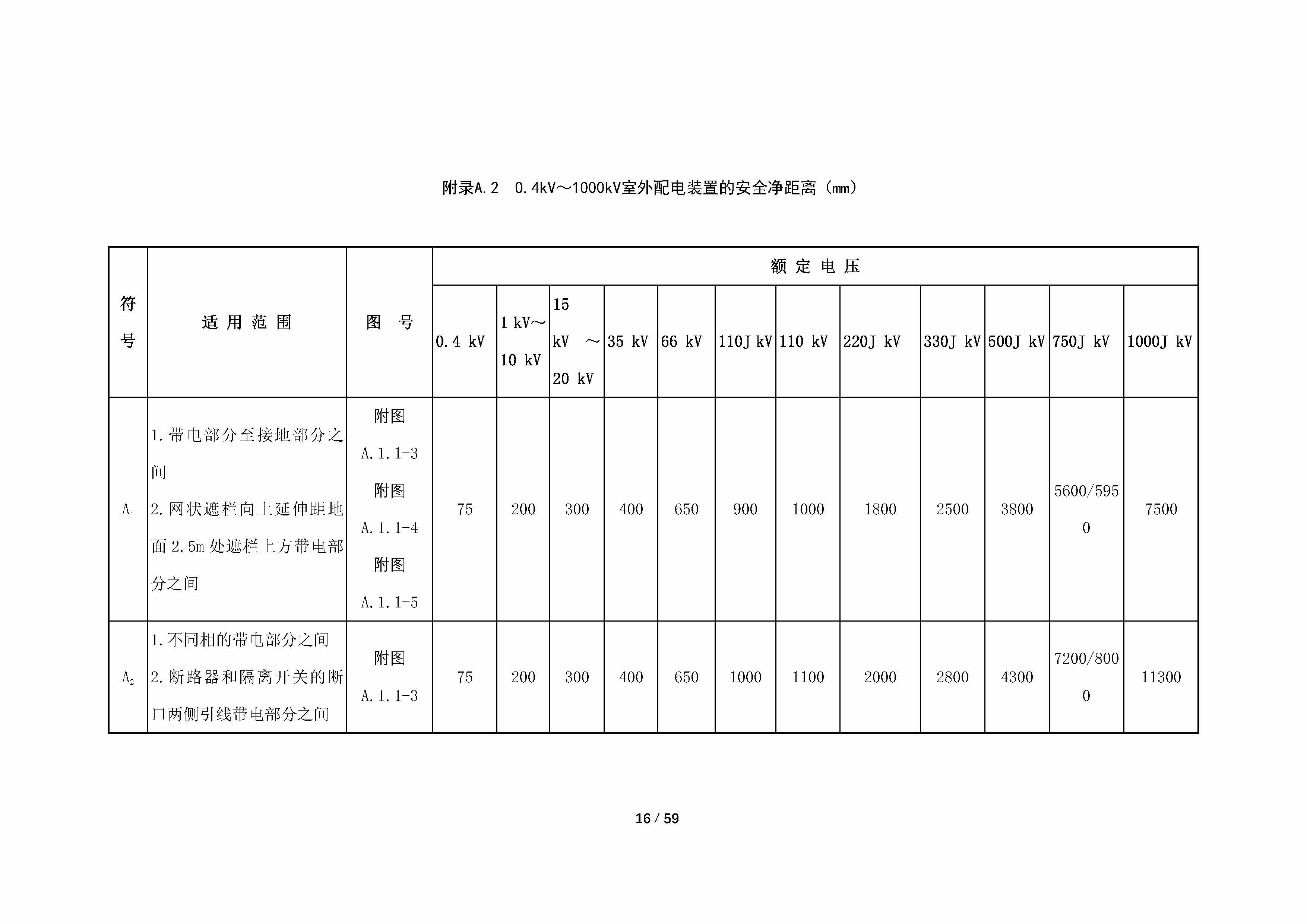 | A2 | 1.不同相的帶電部分之間 2.斷路器和隔離開關的斷口兩側引線帶電部分之間 |
