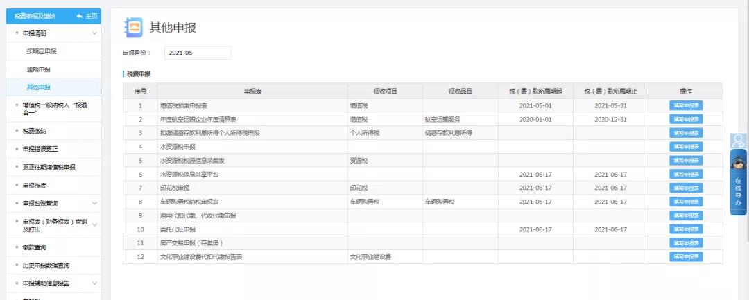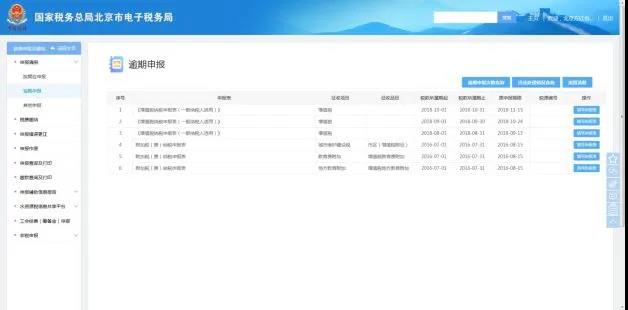 在逾期申報模塊您可以查看逾期未申報內容,并且填寫申報表