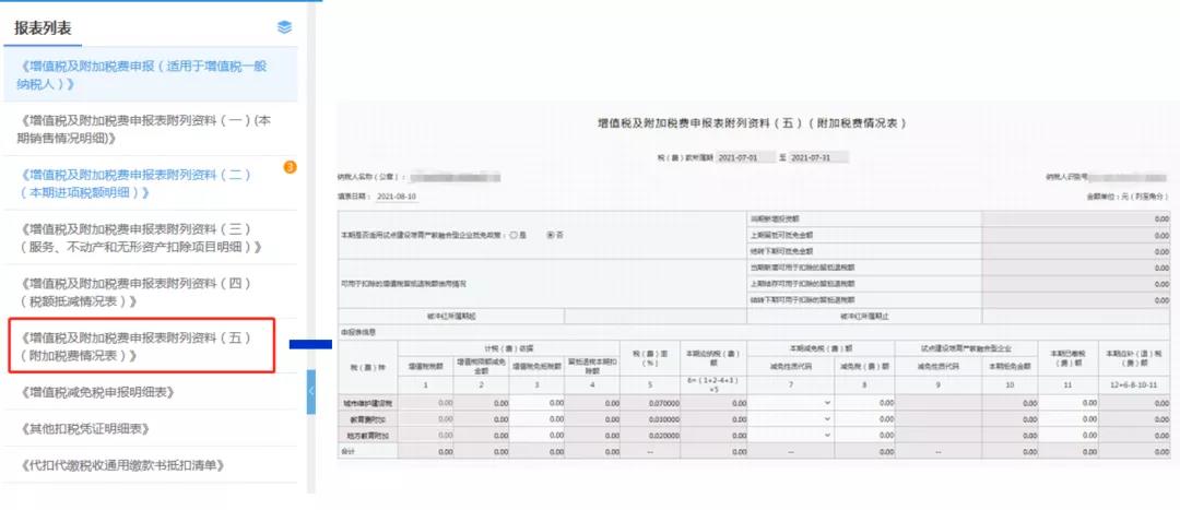 根據《關于增值稅 消費稅與附加稅費申報表整合有關事項的公告》,自2021年8月1日起,全面推行增值稅、消費稅分別與附加稅費申報表整合工作。