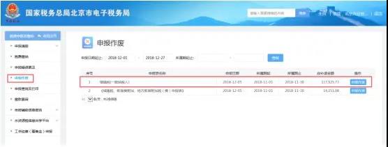 查詢出申報的報表,點擊“申報作廢”。填寫作廢原因,點擊“作廢提交”進行作廢。