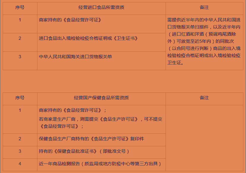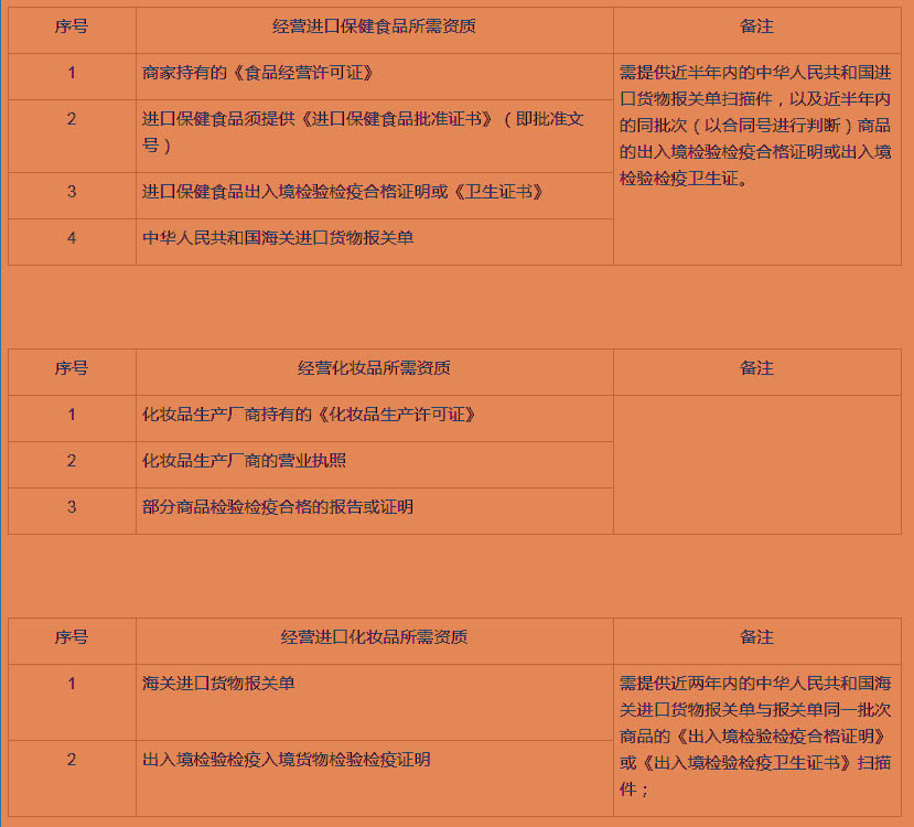 5、特殊商品資質要求: