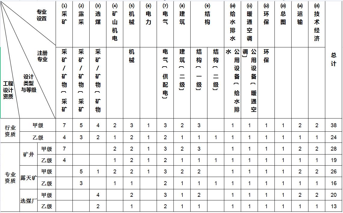 煤炭行業(yè)工程設(shè)計主要專業(yè)技術(shù)人員配備表
