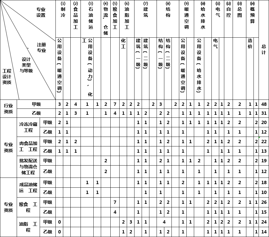 商物糧行業工程設計主要專業技術人員配備表